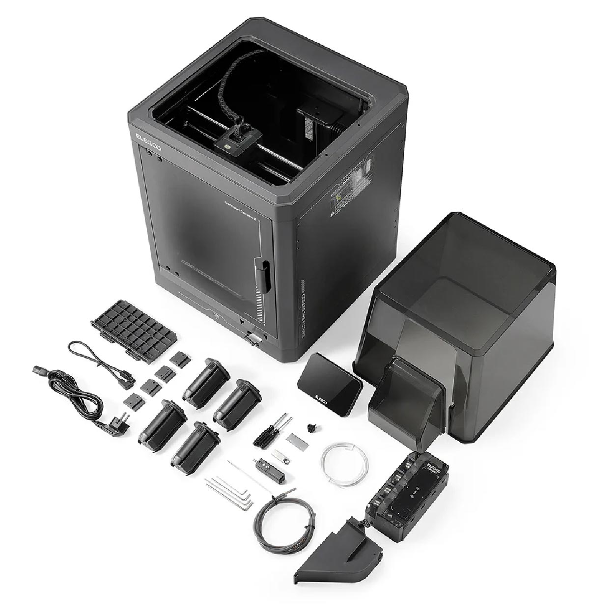 The Elegoo Centauri Carbon 2 Combo combines multicolour printing, broad material compatibility and precise engineering in a powerful, versatile 3D printer. With intelligent systems for filament management, temperature control and calibration, the Centauri Carbon 2 is designed for users who demand clean results, intuitive operation and maximum flexibility.